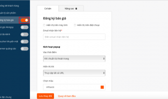 Pop-up báo giá sẽ xuất hiện khi khách hàng truy cập vào trang có chứa những từ khoá trên
